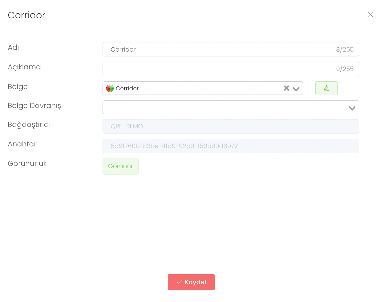 Değişikliklerinizi yaptıktan sonra "Kaydet" butonuna tıkladığınızda bölgeyi güncellemiş olursunuz.