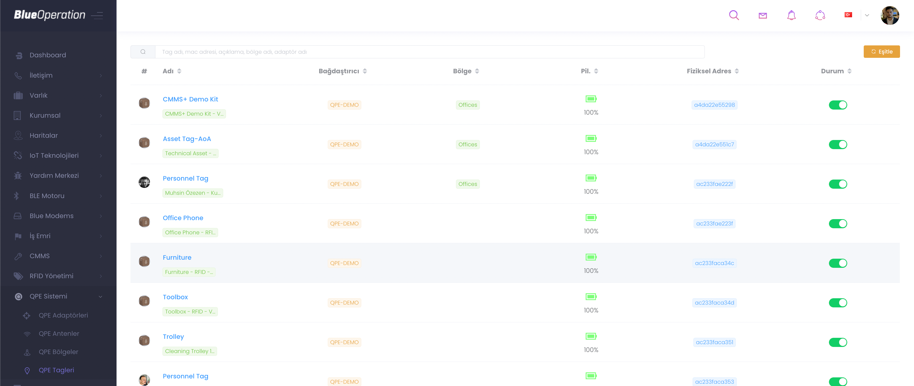 Bu yazılımın tagler bölümünü yönetmek için kullandığımız panel "QPE Tagleri" panelidir. Bu panelde kayıtlı tagleri yönetebilir, diğer taglarla eşitleyebilir.