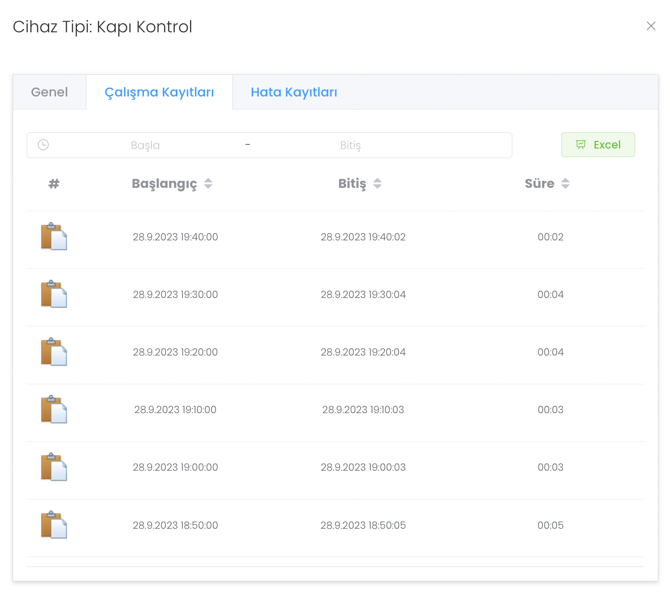 Tüm çalışma kayıtlarını görebileceğiniz, başlangıç ve bitiş belirleyip kategorize edebileceğiniz, tüm kayıtları "Excel" dosyası olarak indirebileceğiniz bir yapı sunar.