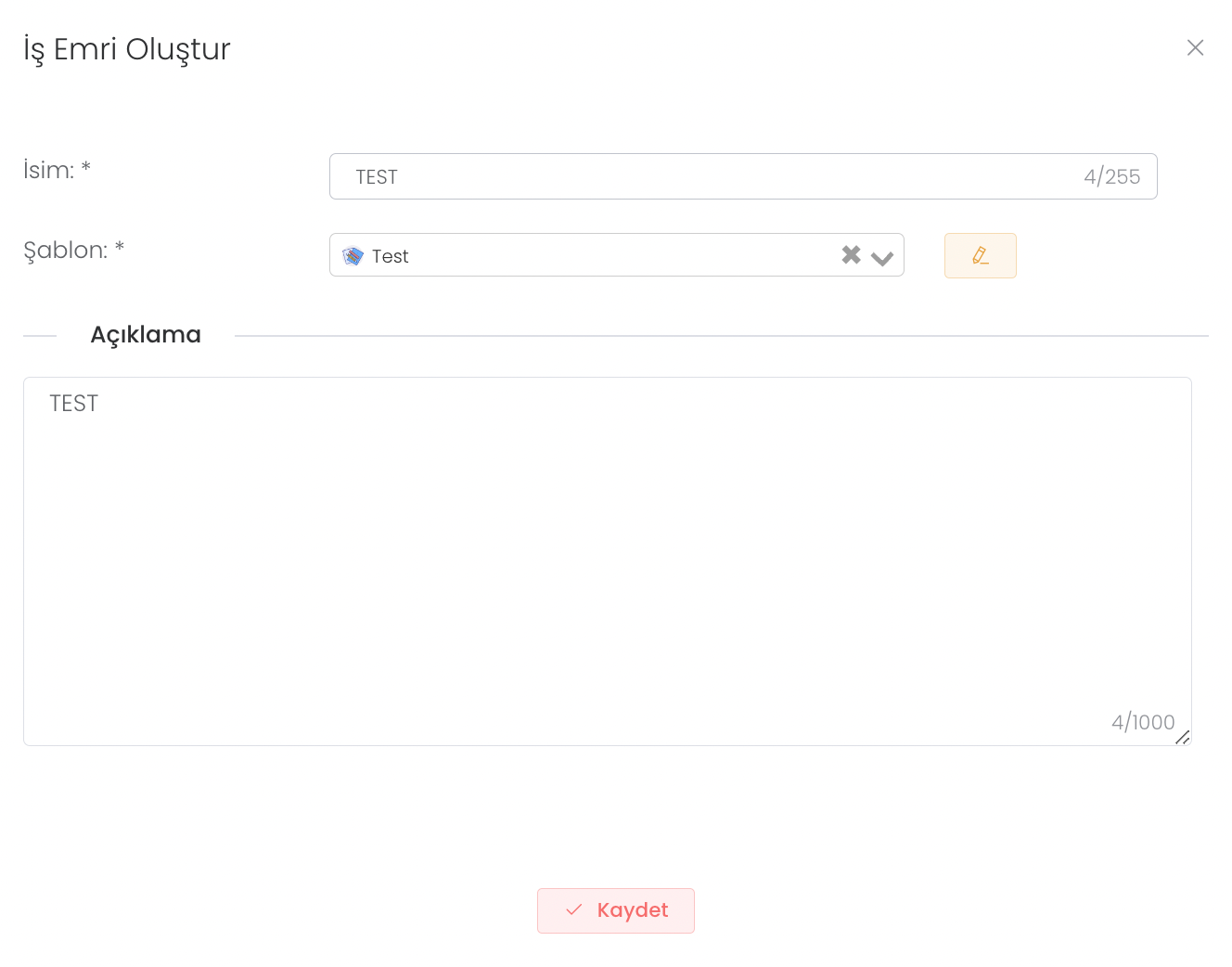 İş Emri Oluştur : Zamanlanmış bir görev üzerinden iş emri oluşturmaya yarar.
