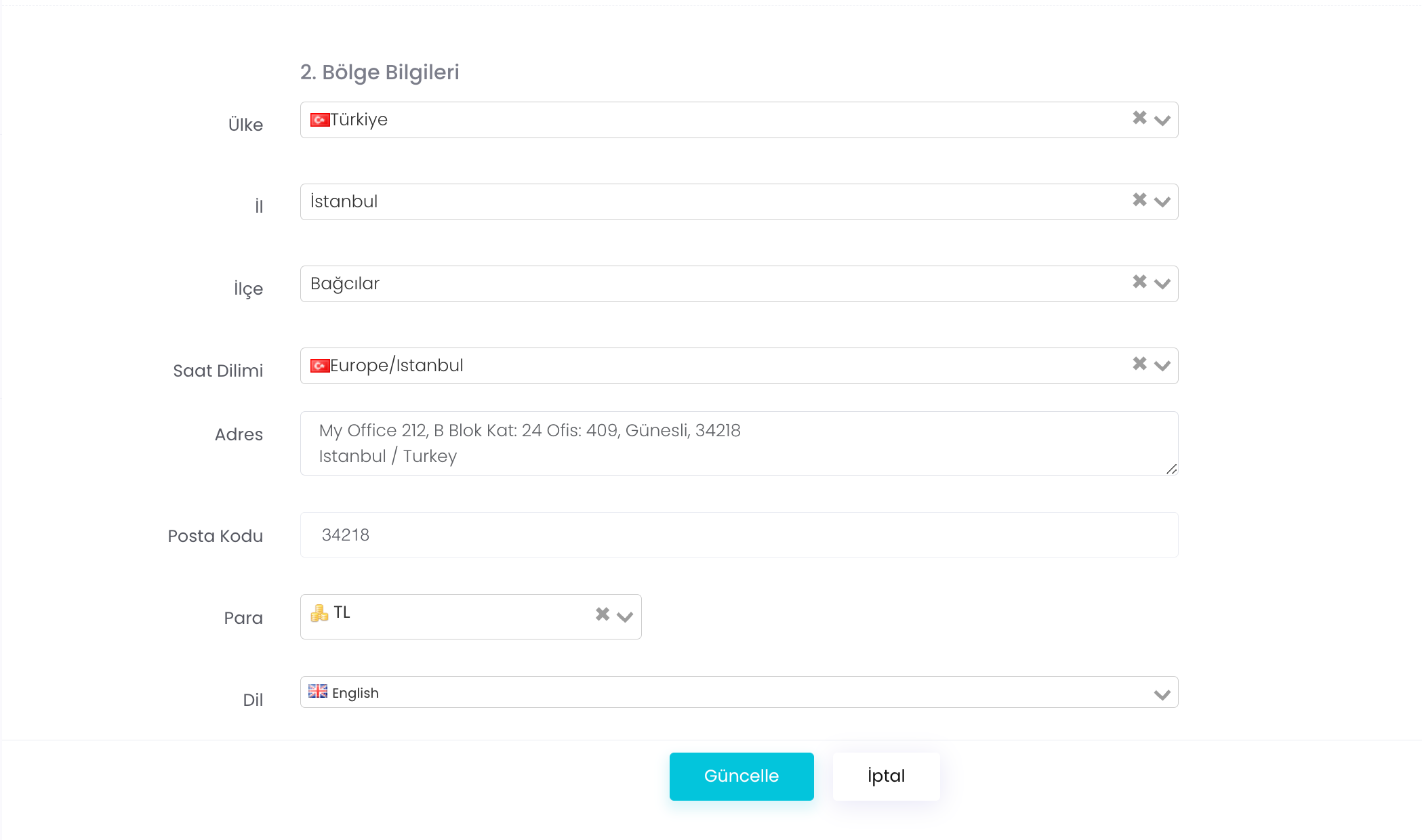 -Bölge Bilgileri : Oluşturduğunuz nebulanın bölge bilgilerini girip girilen bilgileri güncellediğiniz alandır. Tüm bilgileri eksiksiz girdikten sonra "Güncelle" butonuna tıklayıp güncelleme işlemini gerçekleştirebilirsiniz.