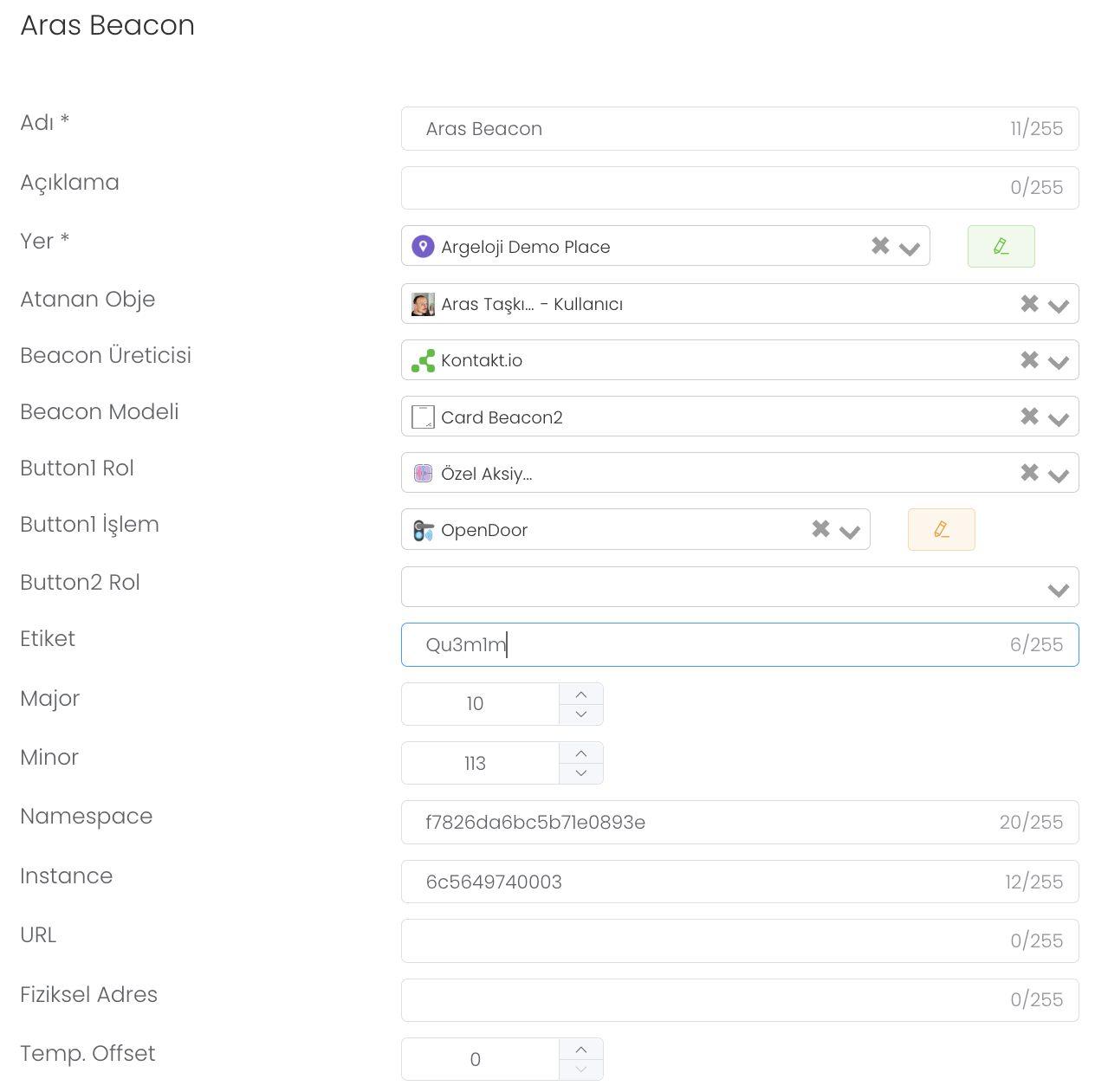 Örnek bir cihaza tıkladığınızda bu cihaz için belirlenmiş tüm bilgileri görseldeki gibidir. Bu bilgileri güncelleyebilir rollerini değiştirebilirsin.
