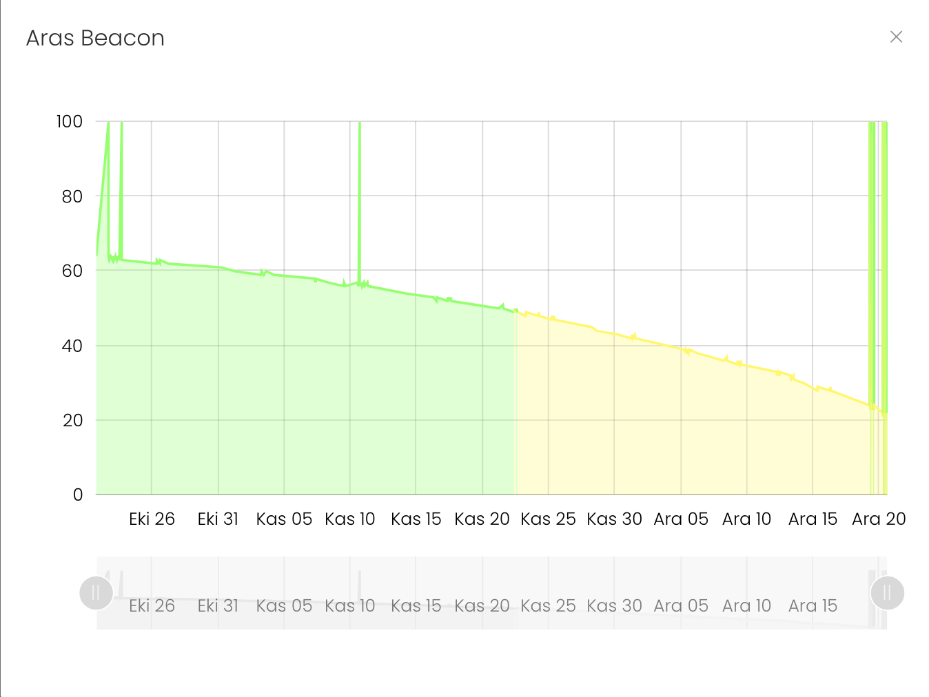 Pil bölümüne tıkladığınızda size bir takvim ve bu takvimle bağlantılı bir pil grafiği karşılar.