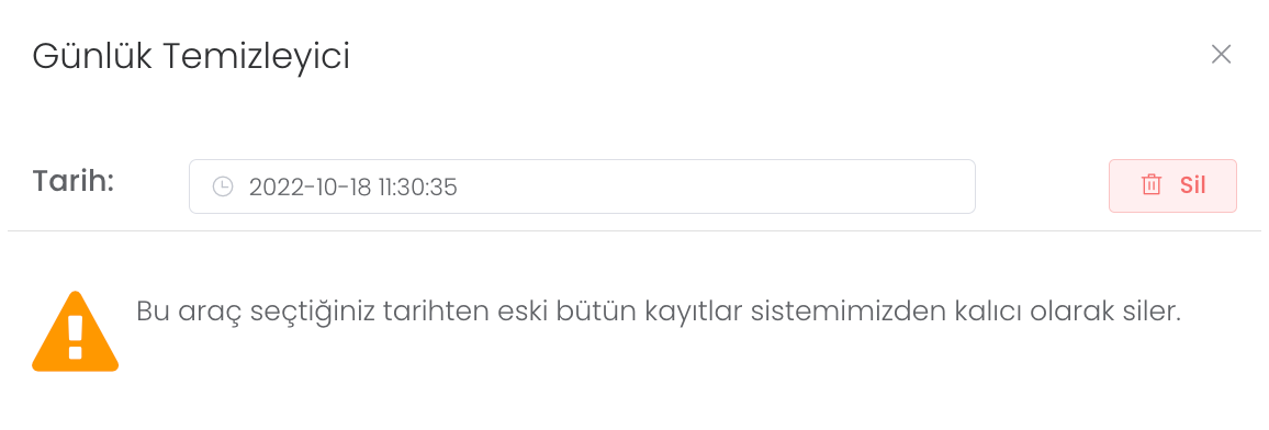 "Loglar" butonuna tıkladığınızda tarih bölümünden aralığı seçip "Sil" butonu ile silme işlemini gerçekleştirebilirsiniz.