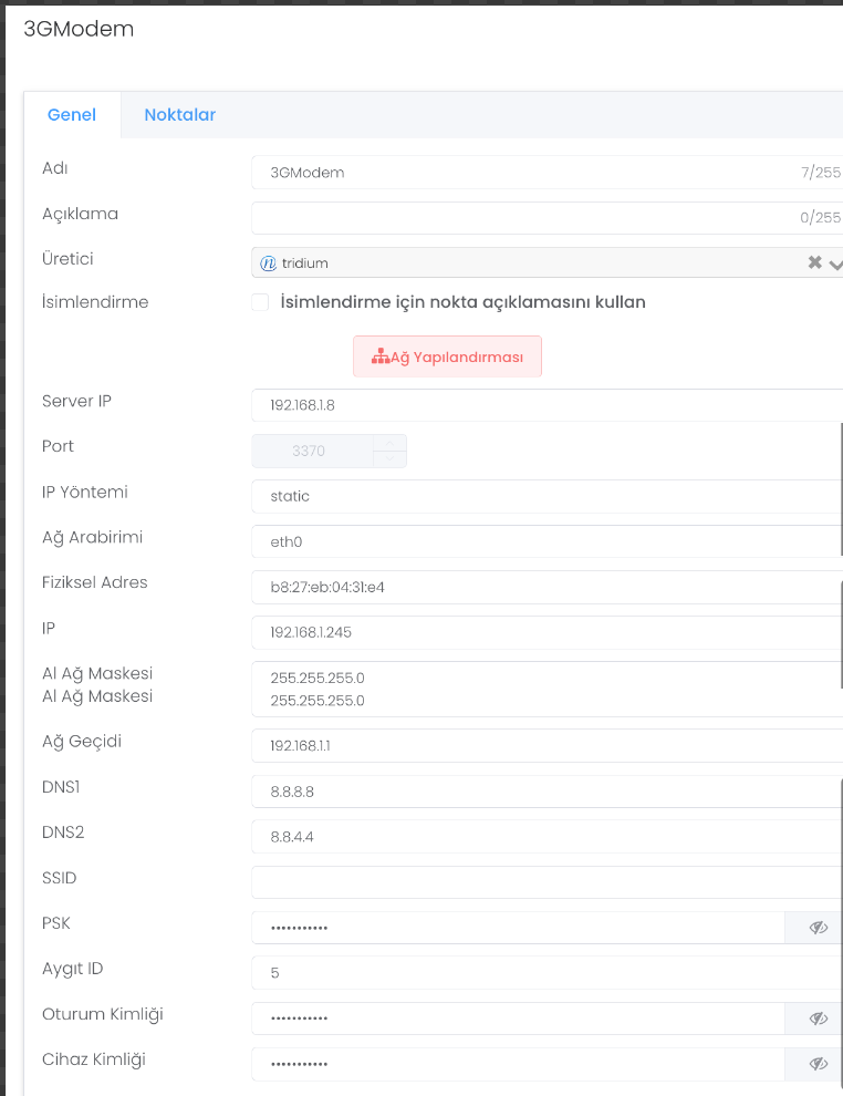 Herhangi bir cihaza basıldığında Genel ve Noktalar olarak iki farklı sekme oluşur. Genel bölümünde oluşturduğunuz cihazın tüm güncellemelerini ve hassas ayarlarını girebileceğiniz bir yapı karşılar.