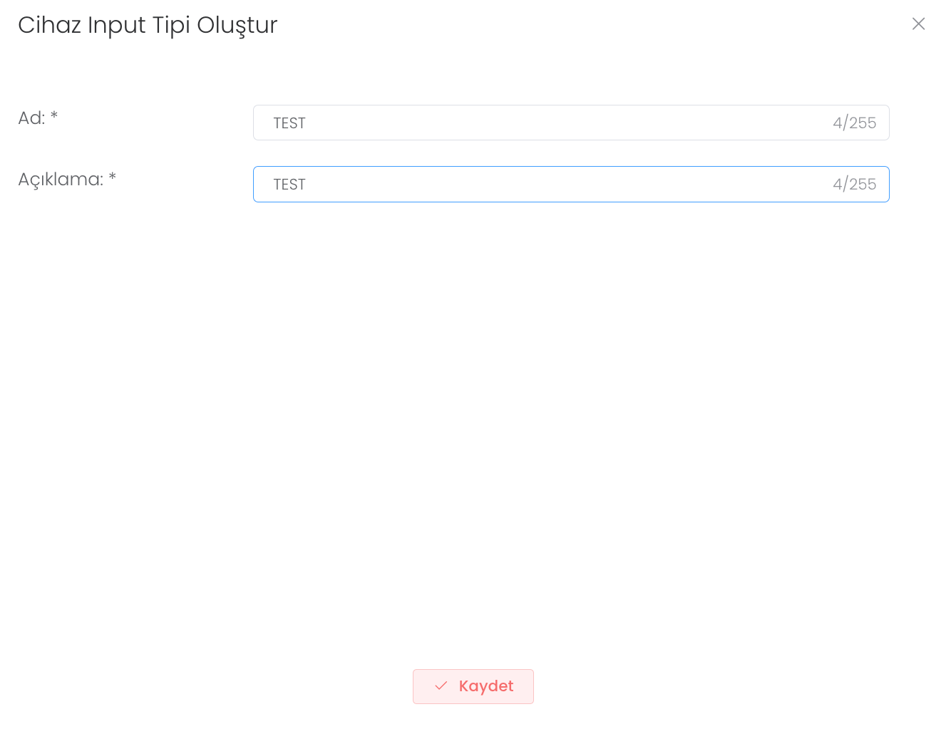 "Oluştur" butonuna bastıktan sonra ad ve açıklama girerek yeni bir cihaz noktası oluşturabilirsiniz.