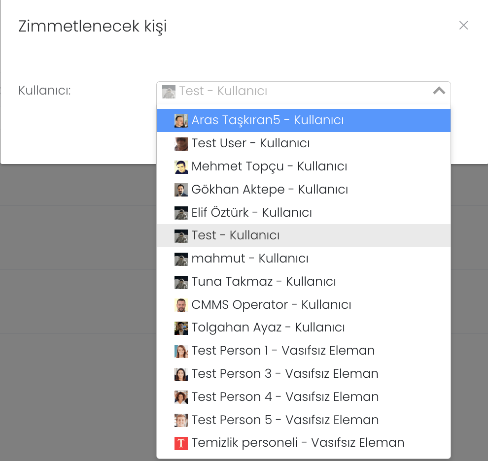 "Atama" butonuna bastığınızda tek yapmanız gereken sisteme kayıtlı kullanıcıyı bulmak ve seçip "Kaydet"butonuna basmak.