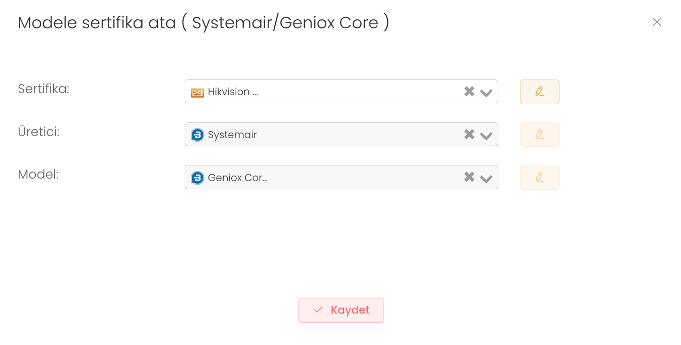 "Sertifikalar" bölümünde cihazın noktalarını görebileceğiniz, yönetebileceğiniz ve gerektiğinde silebileceğiniz yapıdır. "Atama" butonu ile yeni döküman oluşturabilirisiniz.