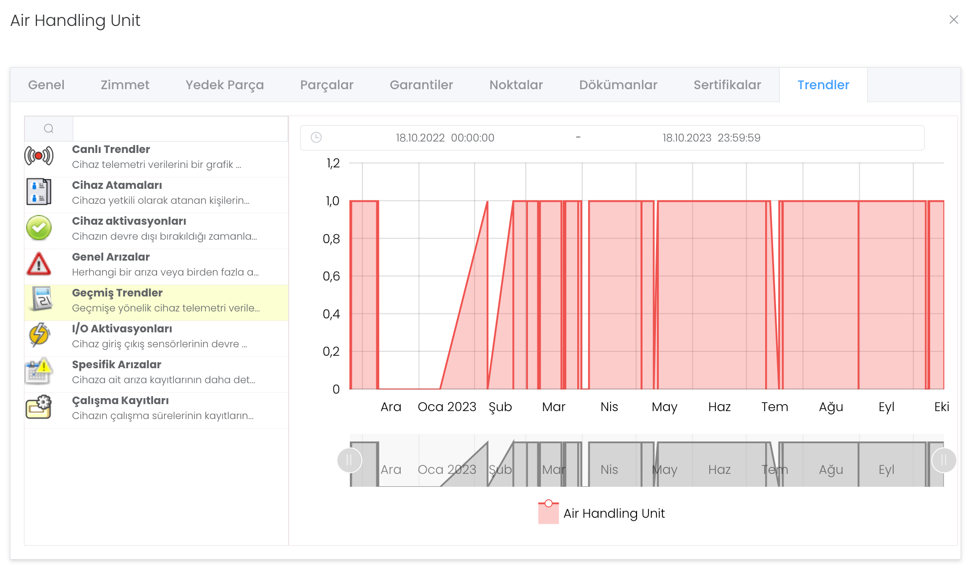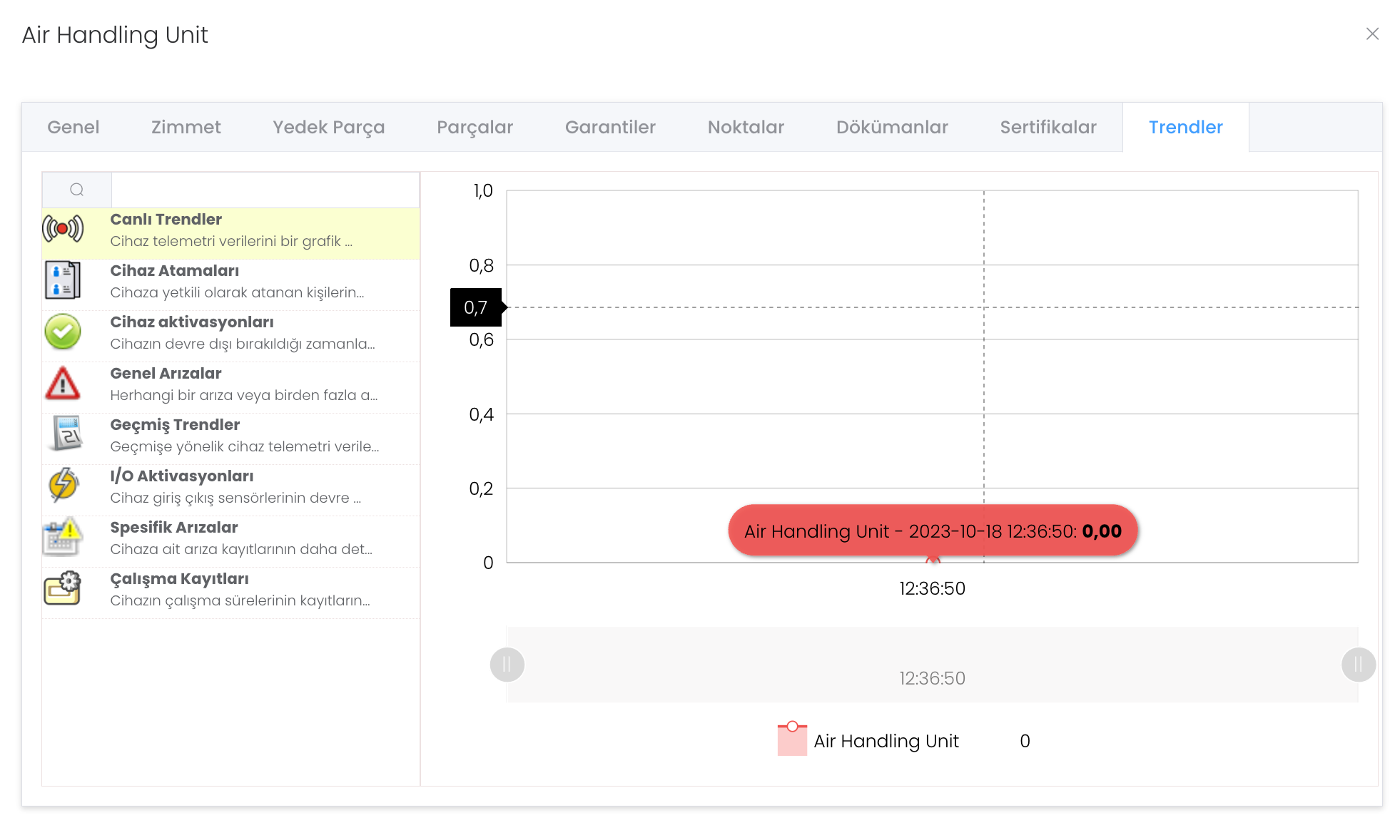 Canlı Trendler : Cihaz telemetri verilerini bir grafik yardımıyla canlı olarak izlemenizi sağlar.