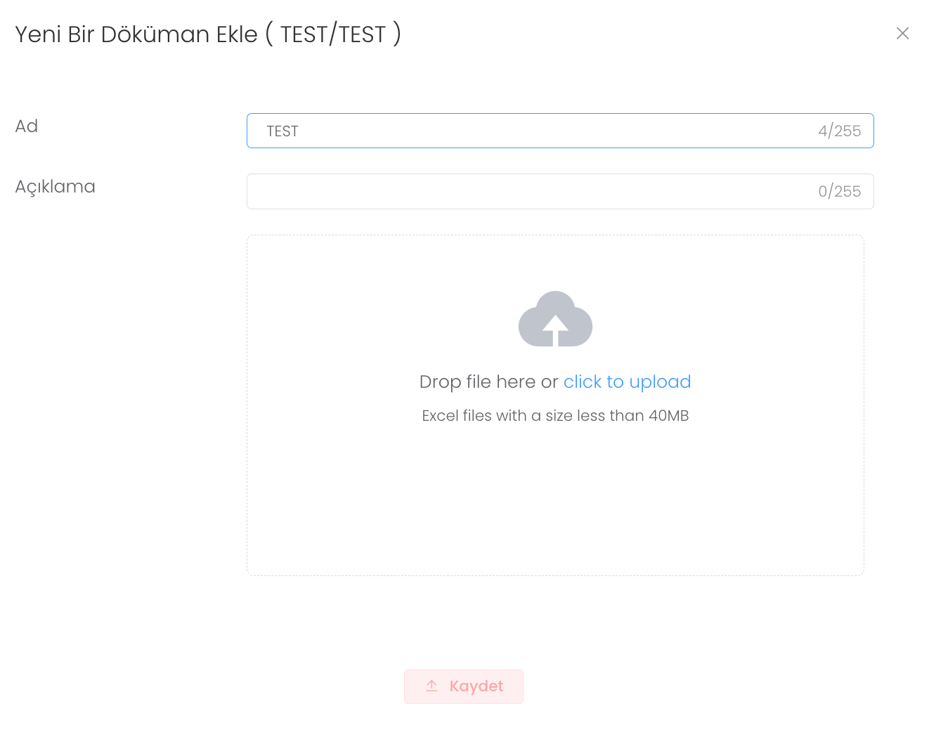 "Oluştur" butonuna tıkladıktan sonra ad, açıklama ve gerekli dosyayı yükleyip "Kaydet" butonuna basmanız yeterli . Böylece yeni döküman eklemiş olursunuz.