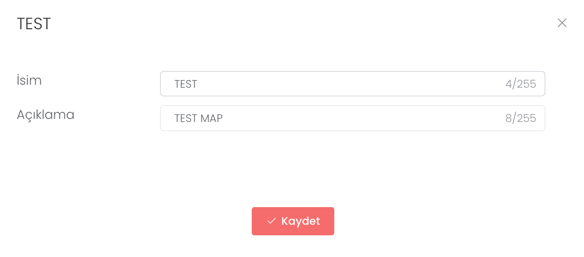 "Düzenle" butonuna tıkladığınızda isim ve açıklamayı değiştirebileceğiniz yapı ortaya çıkar.
