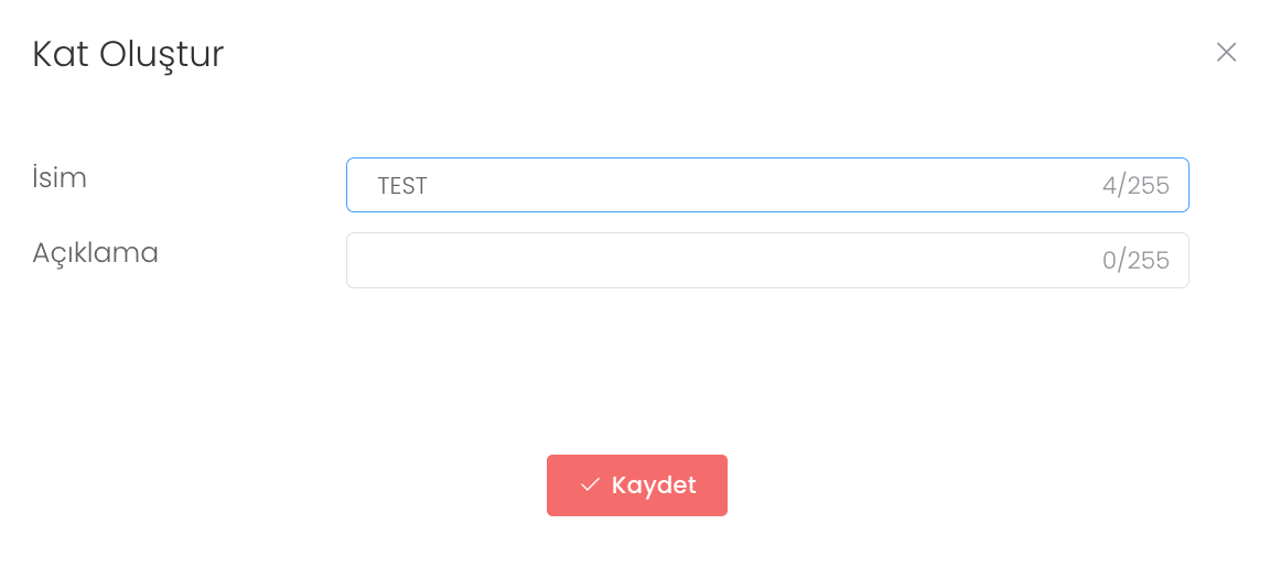"Oluştur" butonuna tıkladığınızda isim ve açıklamayı girerek yeni kat oluşturursunuz.