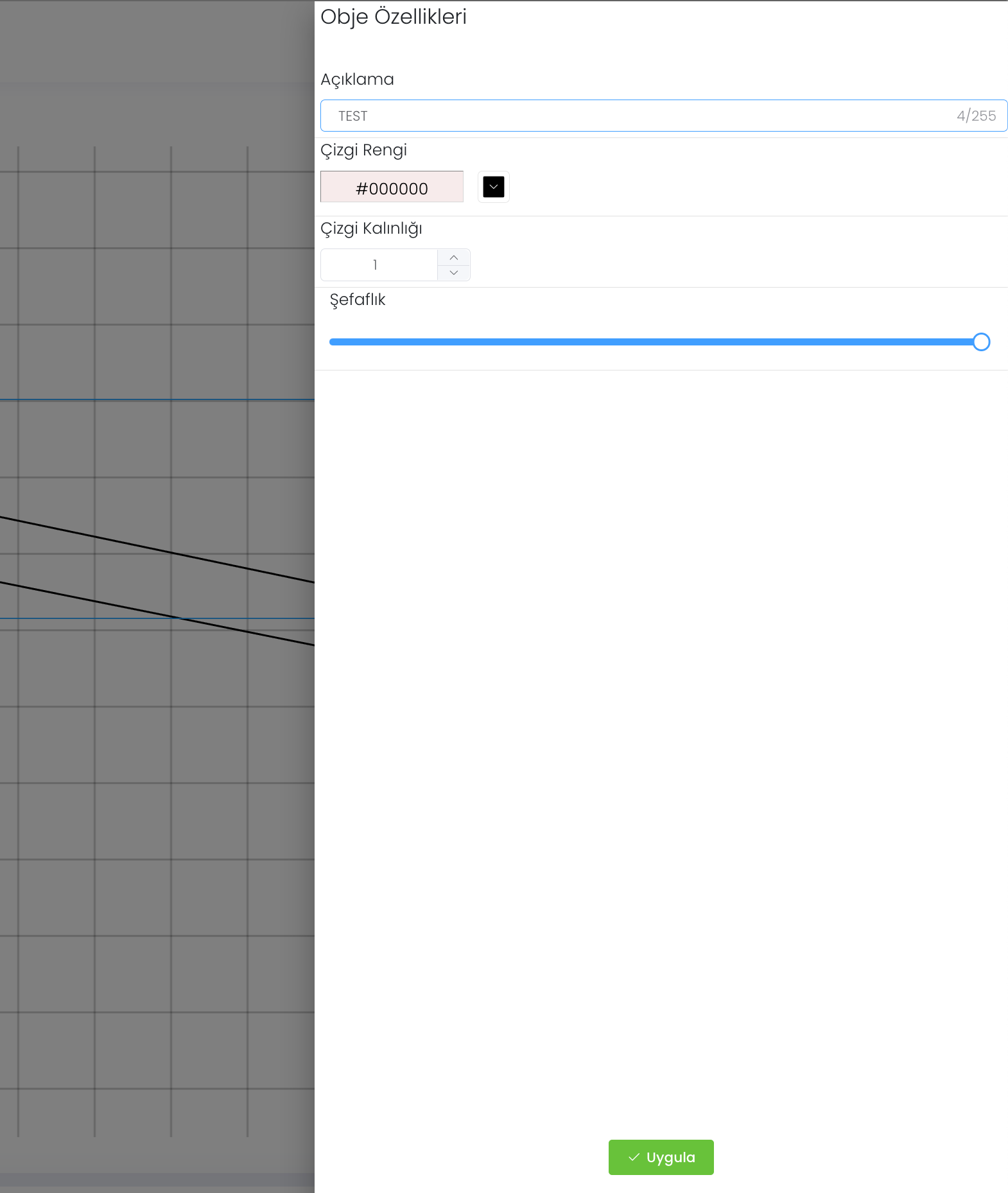 Çizginin üstüne tıkladığımızda bir özellik sayfası açılır. Bu bölümde Açıklama, Çizgi Rengi, Çizgi Kalınlığı ve Şeffaflığını ayarladığımız özelleştirme alanıdır. "Uygula" butonuna tıklayarak yaptığınız değişikliği kaydedebilirsiniz.