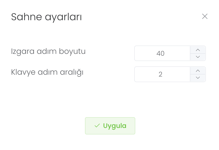 16-Sahne Ayarları : Izgara adım boyutunu ve klavye adım aralığının ayarını yaptığınız yerdir.