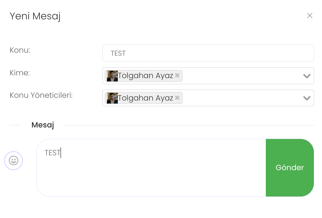 ”Yeni mesaj” kısmında mesajlaşma paneline kimin dahil olacağını ve bu paneli kimin yöneteceğini belirleyip ilk mesajınız ile birlikte mesajlaşacağınız panelin açılmasını sağlarsınız.