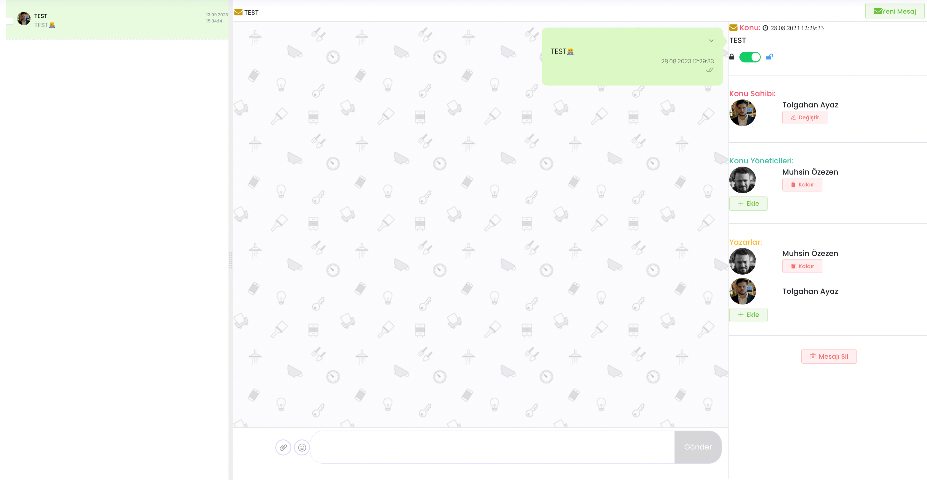Solda bulunan bu kontrol panelinden mesajlaşmayı başlatan konu sahibi bir başkasına “Konu Sahibini Değiştir” kısmından değiştirebilir başka bir kullanıcı yetkilendirebilir.